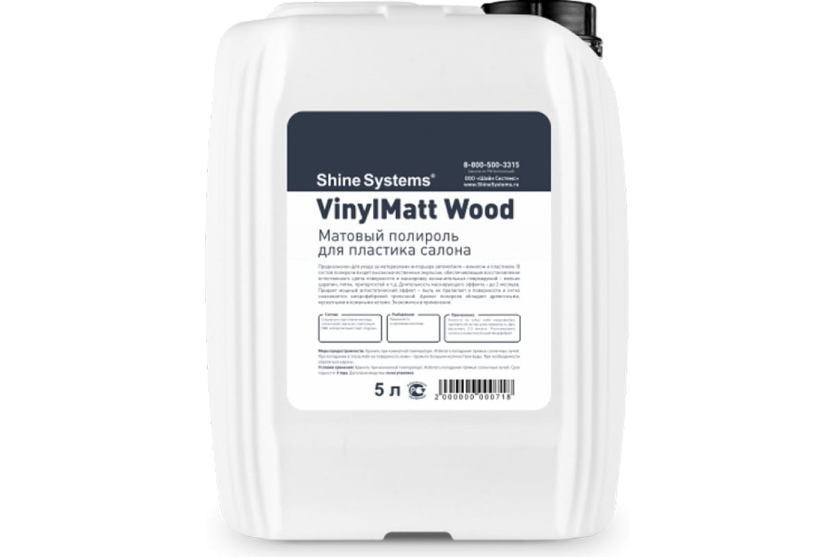 Комплектация: Shine Systems VinylMatt Wood - матовый полироль для пластика салона, 5 л - 1 шт