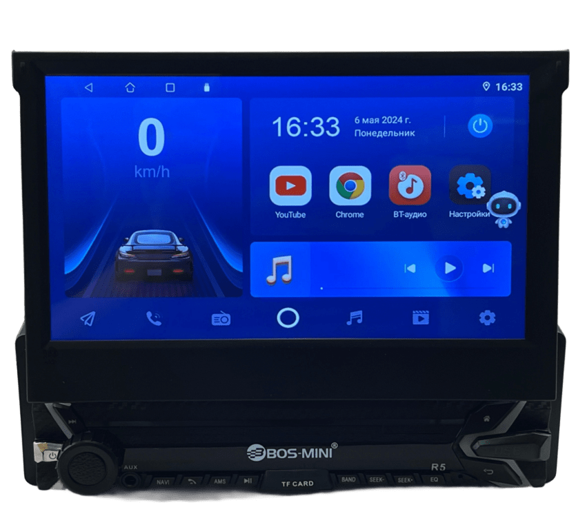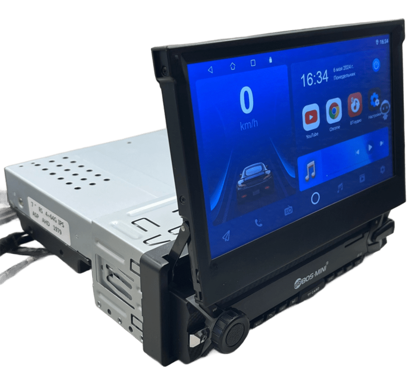 Автомагнитола BOS-MINI R5 на операционной системы Android 10 с выдвижным 7 дюймовым AHD - IPS дисплеем